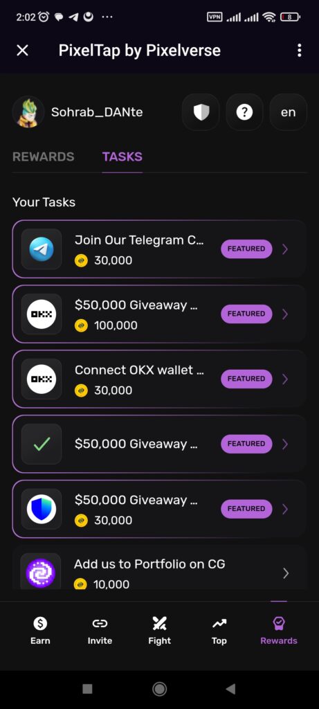 بعد از لیست شدن نات کوین، توجه تمام کاربران به بازی کلیکی تلگرامی جلب شد. ایردراپ پیکسل تپ امروزه بیش از 30 میلیون کاربر فعال دارد و یکی از ترندترین پروژههای کریپتویی و بازی های کلیلکی است. ایرداراپ PixelTap برای افزایش کاربرانش یک مینی ایدراپ زود هنگام 300 هزار دلاری راه انداخته است. تنها کافیست در ربات عضو شوید و 4 نفر از دوستانتان را تا 30 June یا یک شنبه 8 تیر دعوت کنید!!!