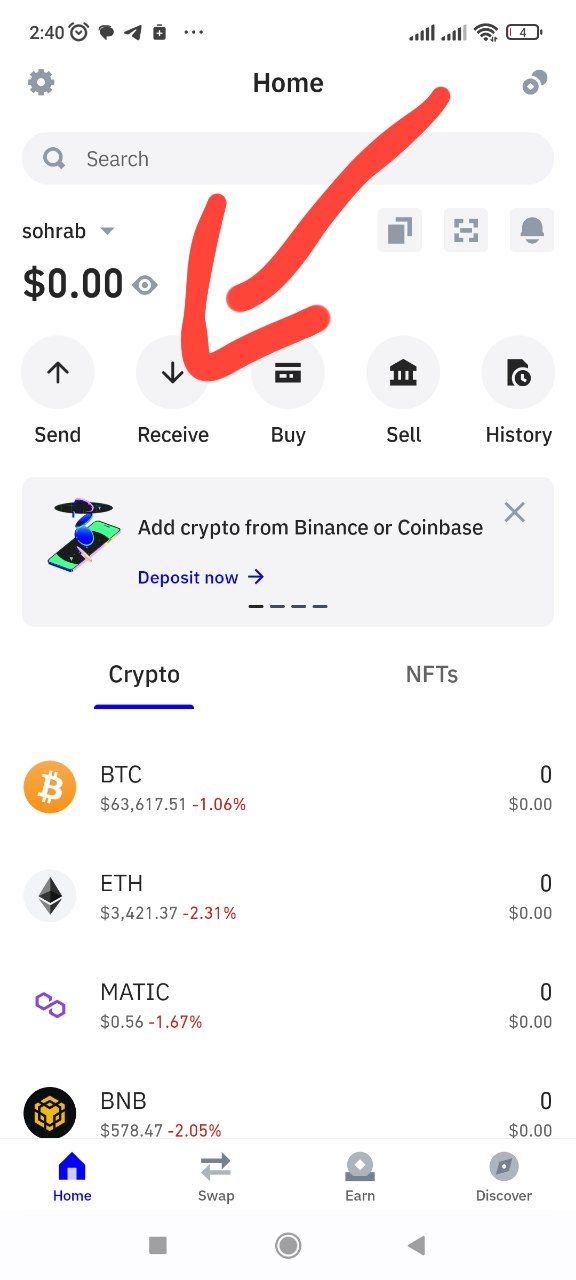 2- وارد صفحه ی تراست ولت شوید و روی دکمه ی Receive کلیک کنید